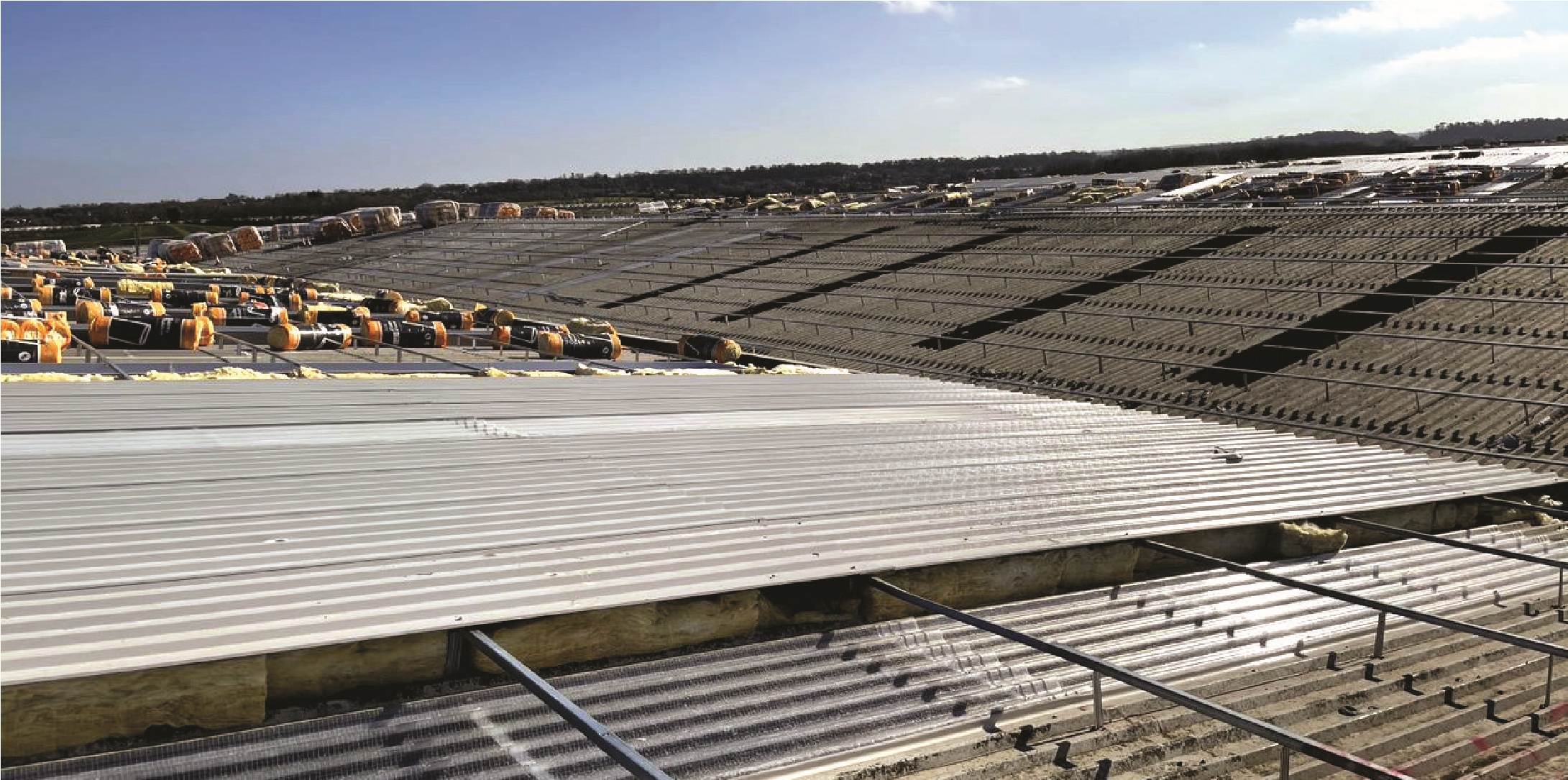 Insulation, when required, is rolled out on to the liner, dressing around the bracket and under the bars to achieve continuous cover. (For Firewall applications this procedure differs, technical data available upon request) The top sheets are laid onto the and fastened down, using the self- drilling fasteners.