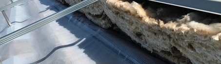 Insulation should be installed between the existing roof and the over roof to reduce the amount of condensation forming and to achieve Local Authority requirements. The insulation should be non-combustible, fill the cavity, be tucked under and around the spacers and tightly butted at its ends and sides. As noted above, the insulation needs to comply with local Building Regulations and could be as low as 0.16 W/m2.