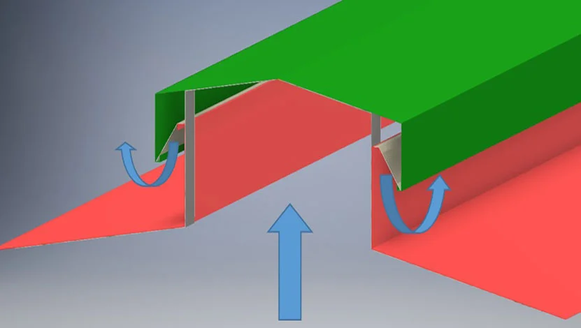 Ridge Vents – GL Profiles has its own built up system for roof mounted ventilation, designed to sit along the ridgeline of a cladded roof.